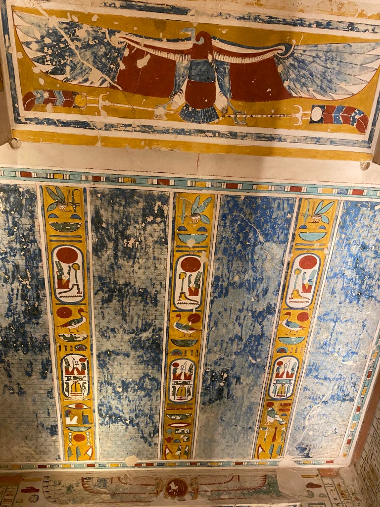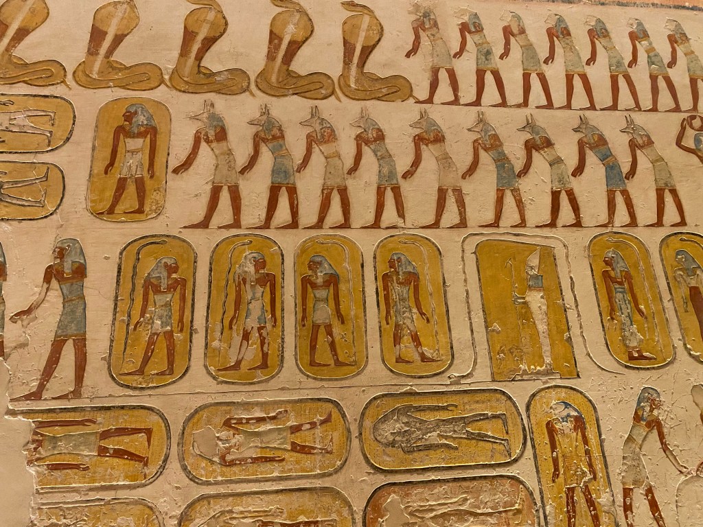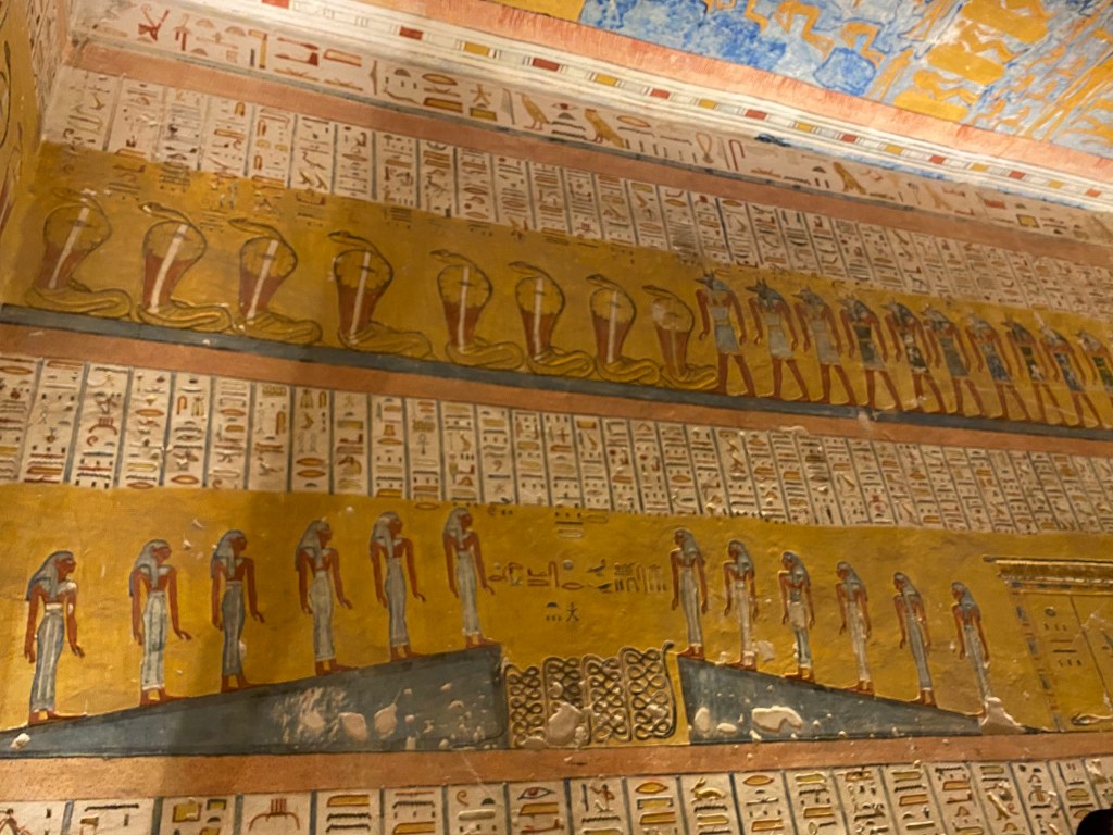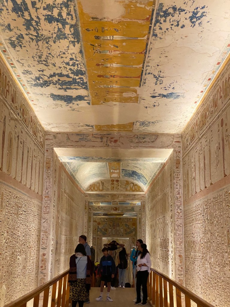 As we stepped down into our first tomb, the walls came alive with stories – Osiris and Anubis, rivers of hieroglyphs winding their way through narrow corridors like sacred graffiti.