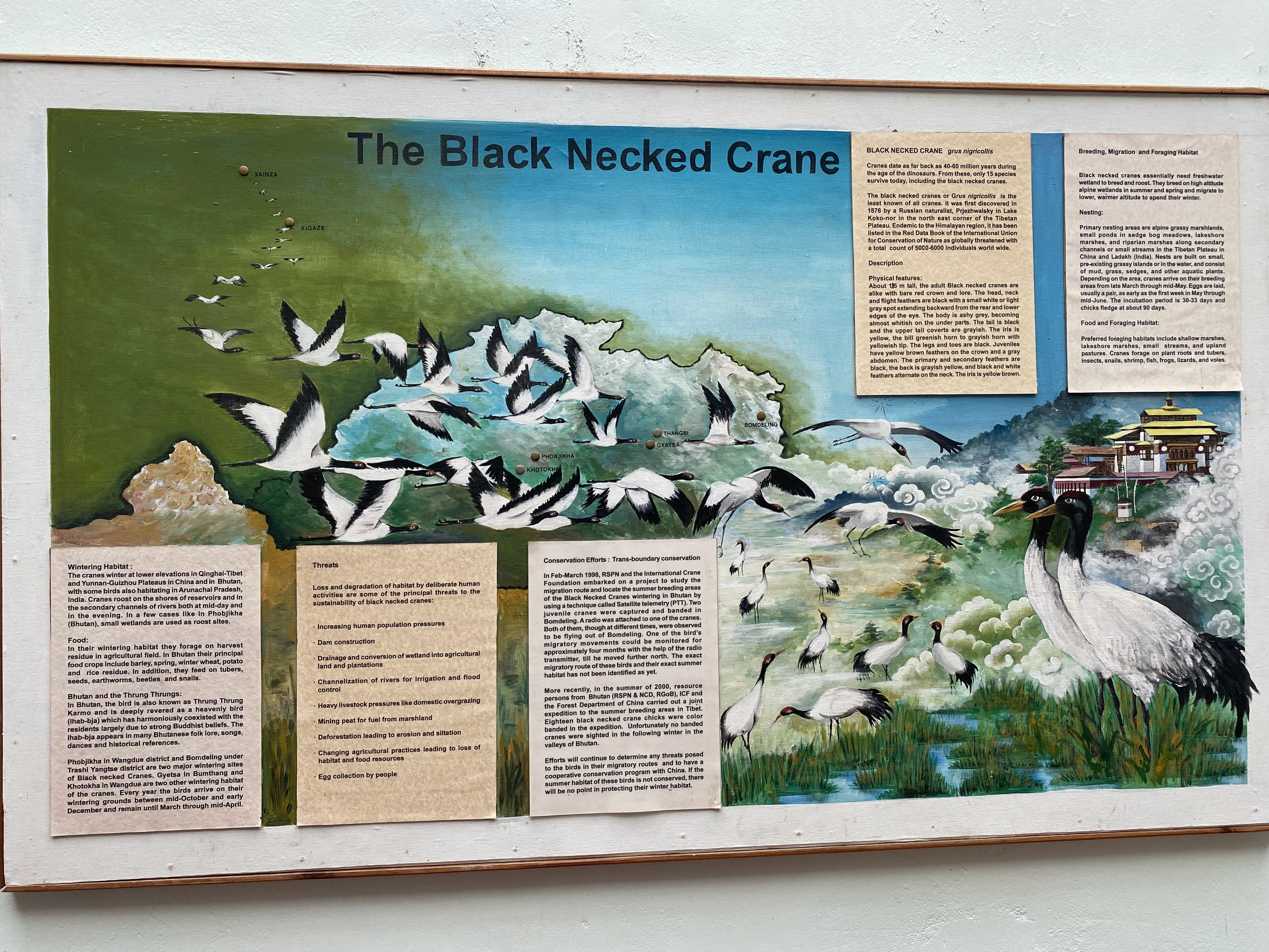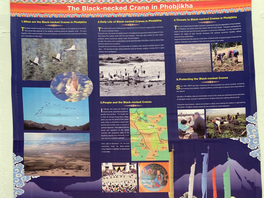 The Royal Society for Protection of Nature in Bhutan has a crane center which has on display information on the black necked cranes and the ecology of the valley.