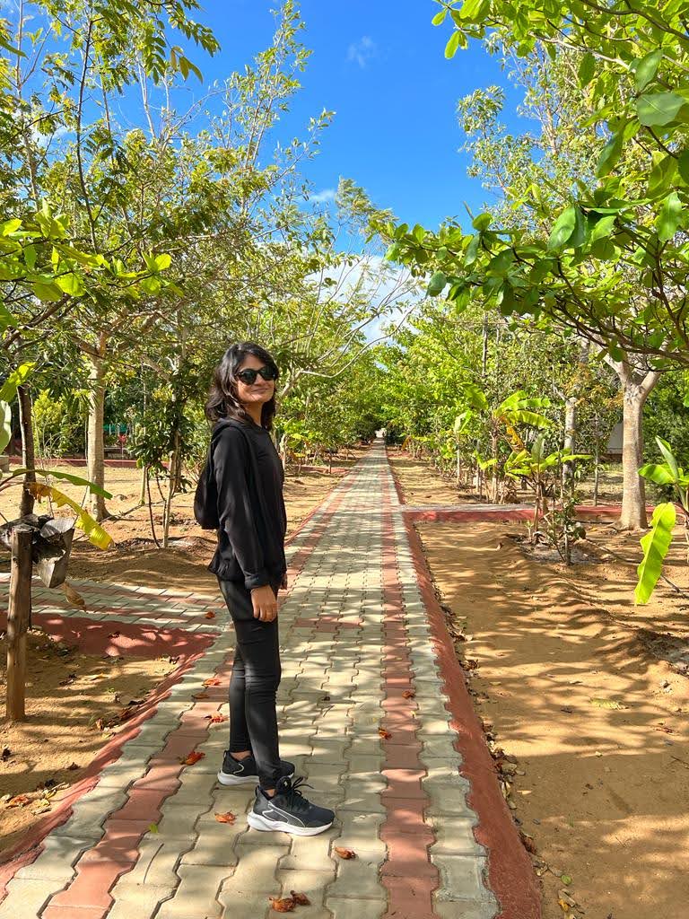 There is plenty to do and stay engaged here for the restless souls. Go out for a walk in the nearby farms. Your brown girl spotted tomatoes, brinjals, cucumber and acres of rose farms 🌹