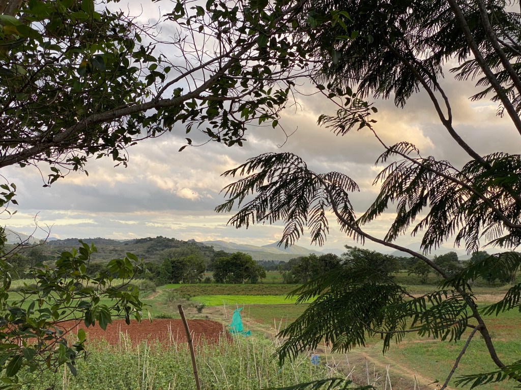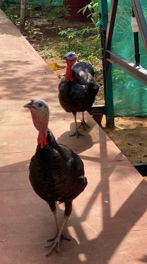 As soon as you enter, you’ll be welcomed by the mooing of cows and if you’re lucky a couple of guinea fowls as well, but which soon vanish from sight shying away from the paparazzi. You know, awestruck city people and their cameras! Walk further in, and the vibe hits different. A narrow paved lane lined with fruit trees and flowering shrubs and then vast open expanse on both sides. All that can be heard are the rustling of leaves, birds chirping and maybe some happy banter and a laugh here and there.