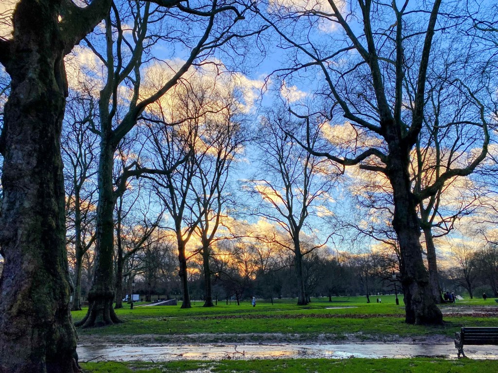 Green Park, during sunset, and after a bout of rain