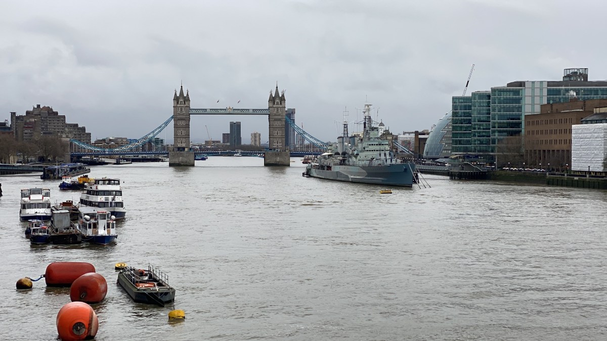 And if you happen to be by the Thames while the sun shines, the earlier muted blues are replaced by shimmers and elongated shadows cast by the riverside buildings.