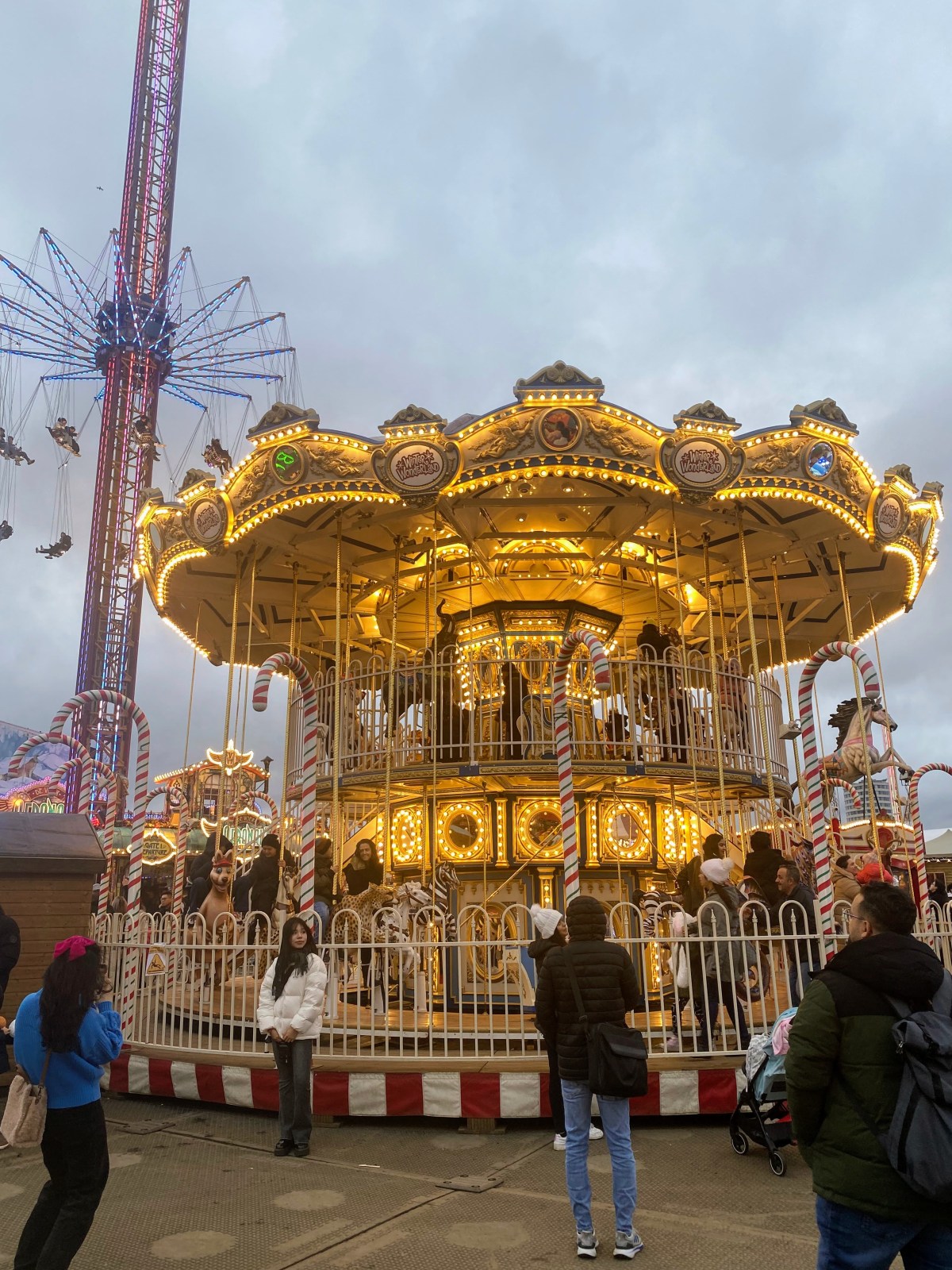 Winter Wonderland at Hyde Park in London, is an annual fun fair which runs from November to January. It’s best to book tickets in advance as the slots run out pretty quickly. And it definitely should not be missed. No doubt one can spend the entire day here, but the entry is permitted only during the specific slot for which the ticket is booked. The best time however, in my perspective, is late afternoon as the as the lights are nothing short of mesmerising. Twinkling fairy lights adorn every corner, draping the trees with a soft, ethereal glow. Illuminated archways guide the way, leading visitors through a pathway of sparkling brilliance. Multicolored strings of lights crisscross above, casting a warm and festive hue over the bustling crowd.