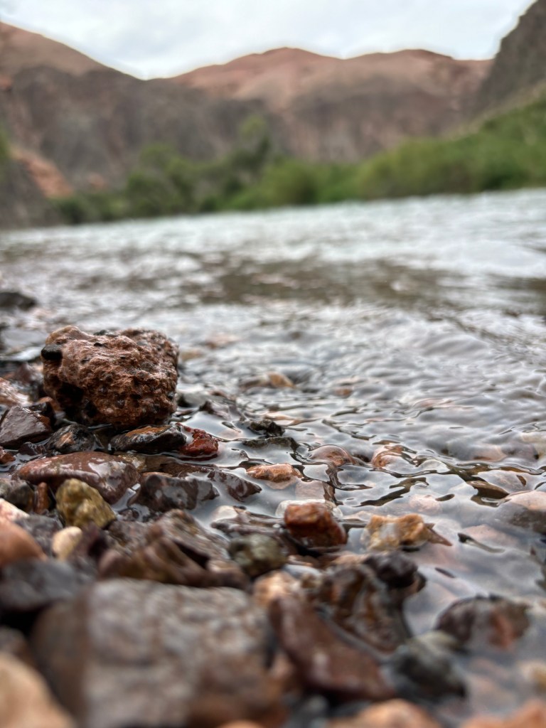 The canyon narrows down here and there with walls rising even higher. Eventually, the trail leads to the Charyn river and the scape opens up again. On approaching, it’s a serene spot surrounded by lush greenery, a beautiful contrast against the rugged canyon walls. Soothing and inviting! Like calling out to pause and rest before starting the return journey.