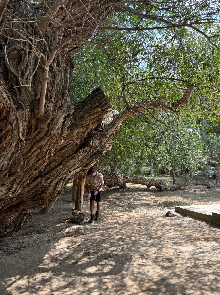 On the way to Altyn Emel National Park (from Basshi), is this place called Kosbastau Oasis which houses a 700 years old willow tree. It was a hot day and in spite of summer sun shining away with all glory, this place was cool and breezy, green, a cold stream flowing nearby, such a contrast to the deserted area we were about to witness in a bit.