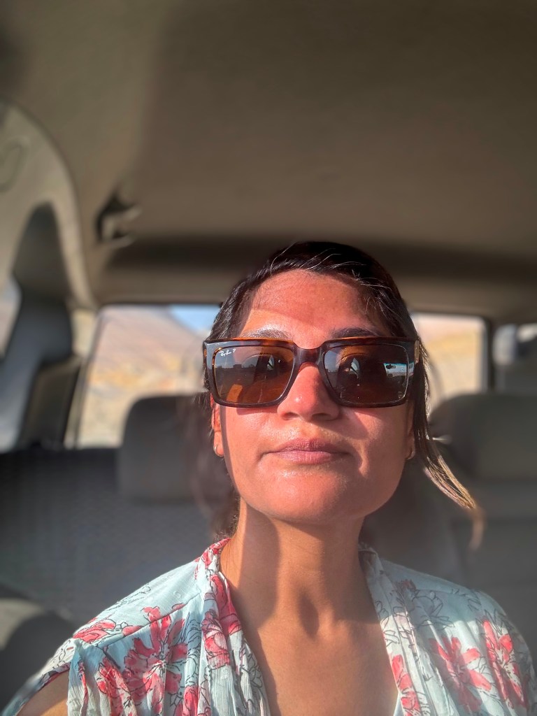Important FYI : In the first week of August, which is when we were there, the temperatures were as high as 43 degrees Celsius. Even with all the protective gear, and layers of sunscreen, the skin was burning. Hot, dry winds made it further difficult to walk and even breathe. We had only one bottle of water for the entire group and that was the biggest mistake. In just two hours of being there, exploring the bizarre beautiful landscape, we felt burnt and dehydrated.