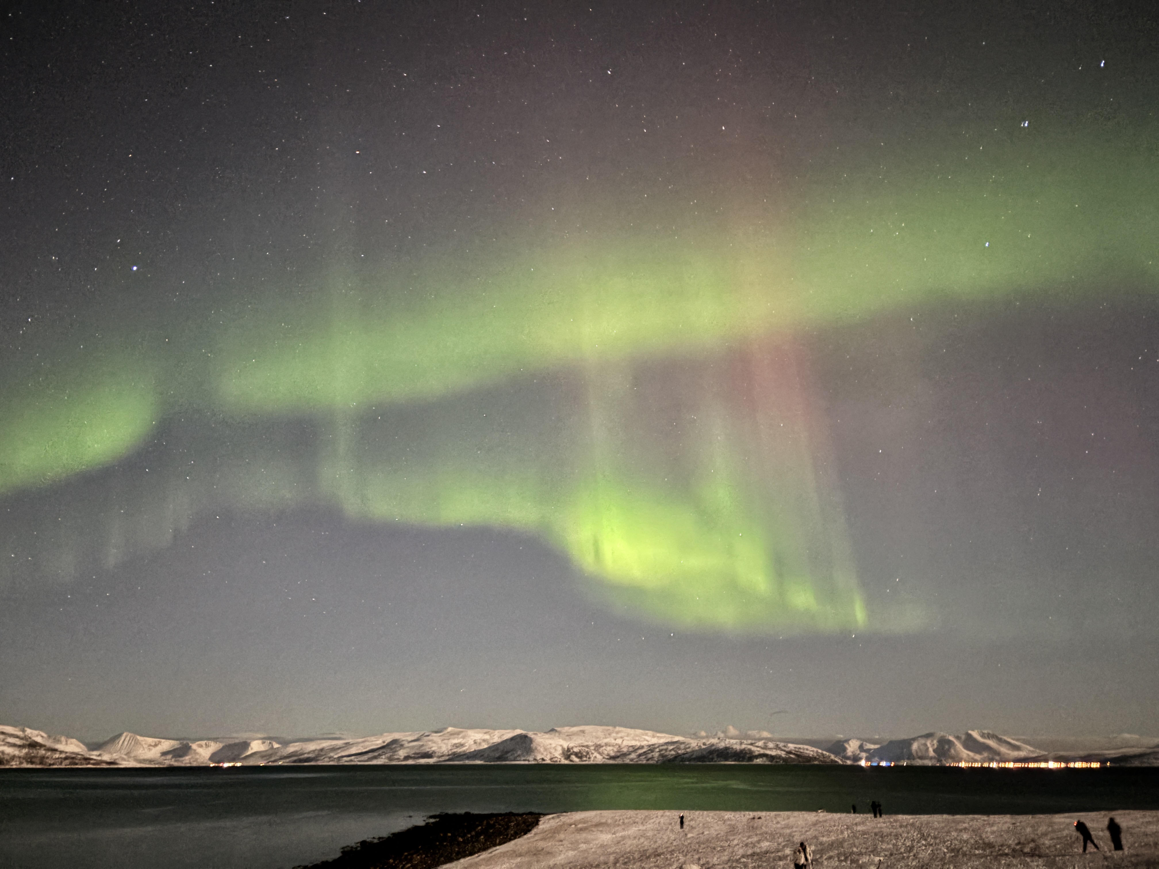 If you’re doing guided tours, you wouldn’t need to worry about choosing a spot. But if not then remember that while Tromsø is fantastic for viewing the aurora, getting away from the city’s lights is ideal. You can choose to venture out to quieter, darker spots such as Fjellheisen, Telegrafbukta, Prestvannet or go further to Kvaløya Island, the Lyngen Alps, or nearby villages of Ersfjord or Sommarøy for a more magical and isolated experience. It’s also possible to drive till Kilpisharvi in Finland and a lot of guided tours actually drive all the way till Finland to find the perfect spot on cloudy nights in and around Tromso.