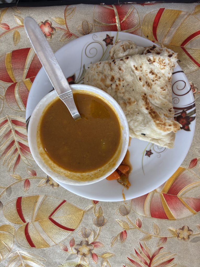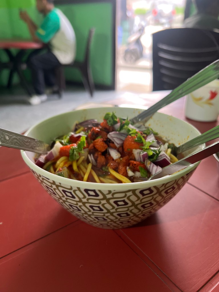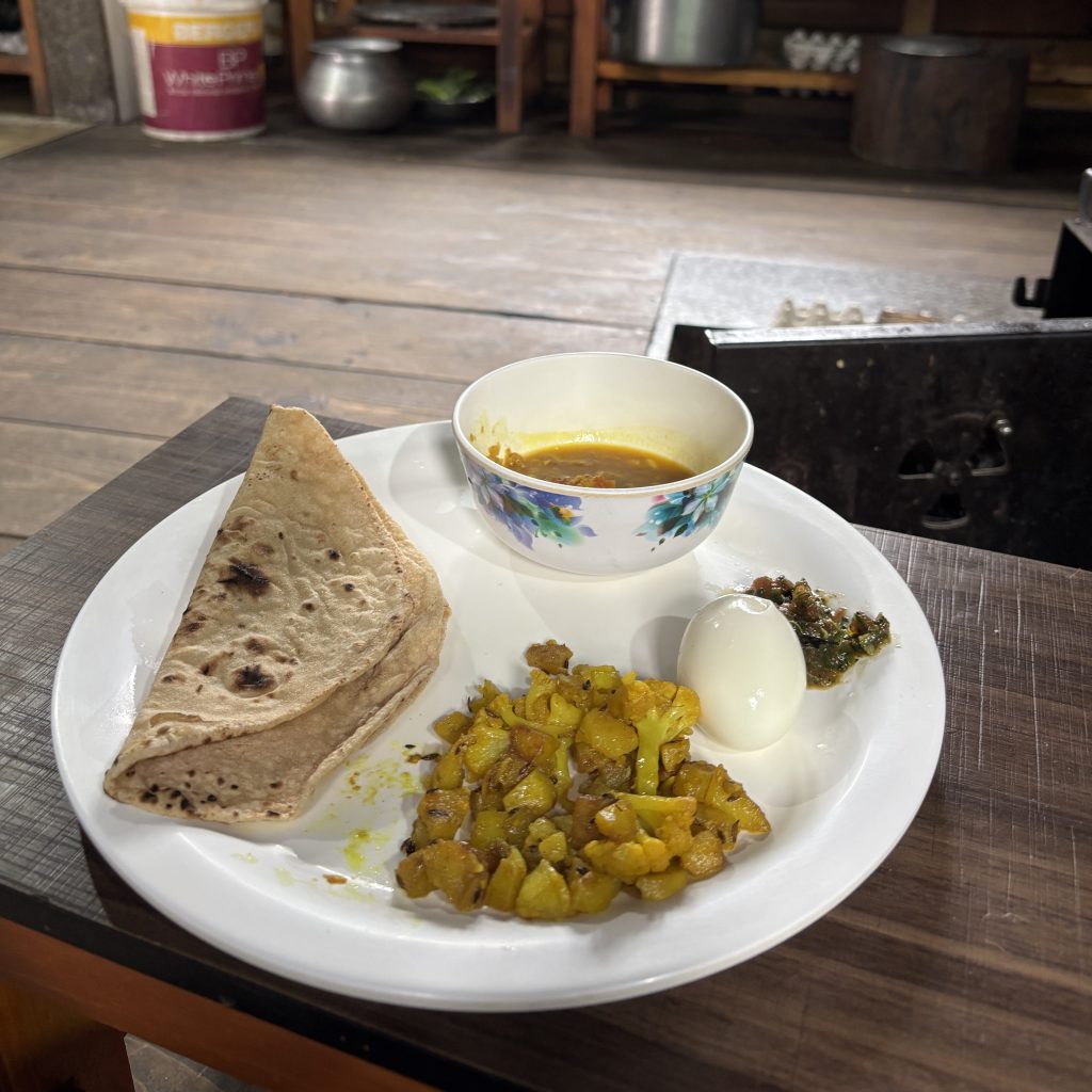 For breakfast, the available option is mostly the humble roti-sabzi (vegetable – dry or curry) and maybe sometimes poori-sabzi / paratha-sabzi depending on availability and the place.
