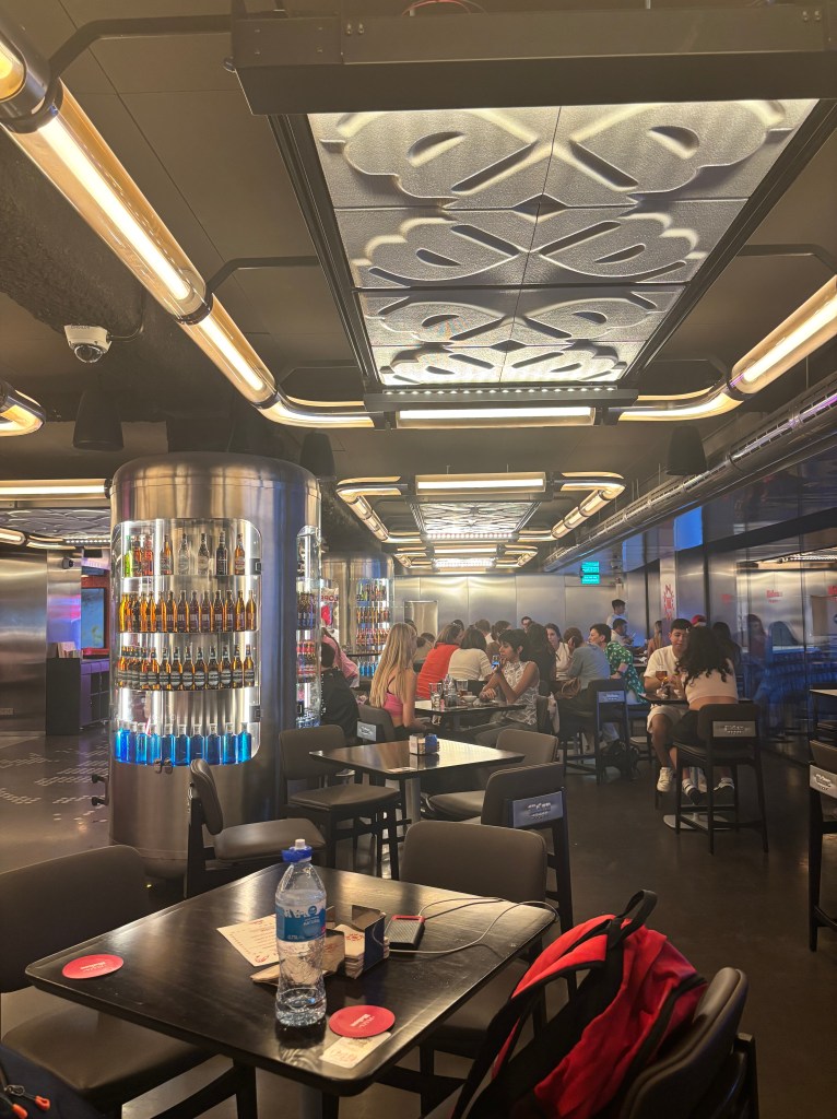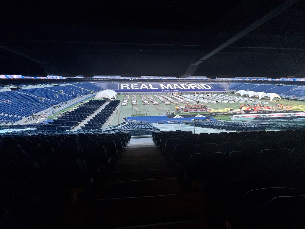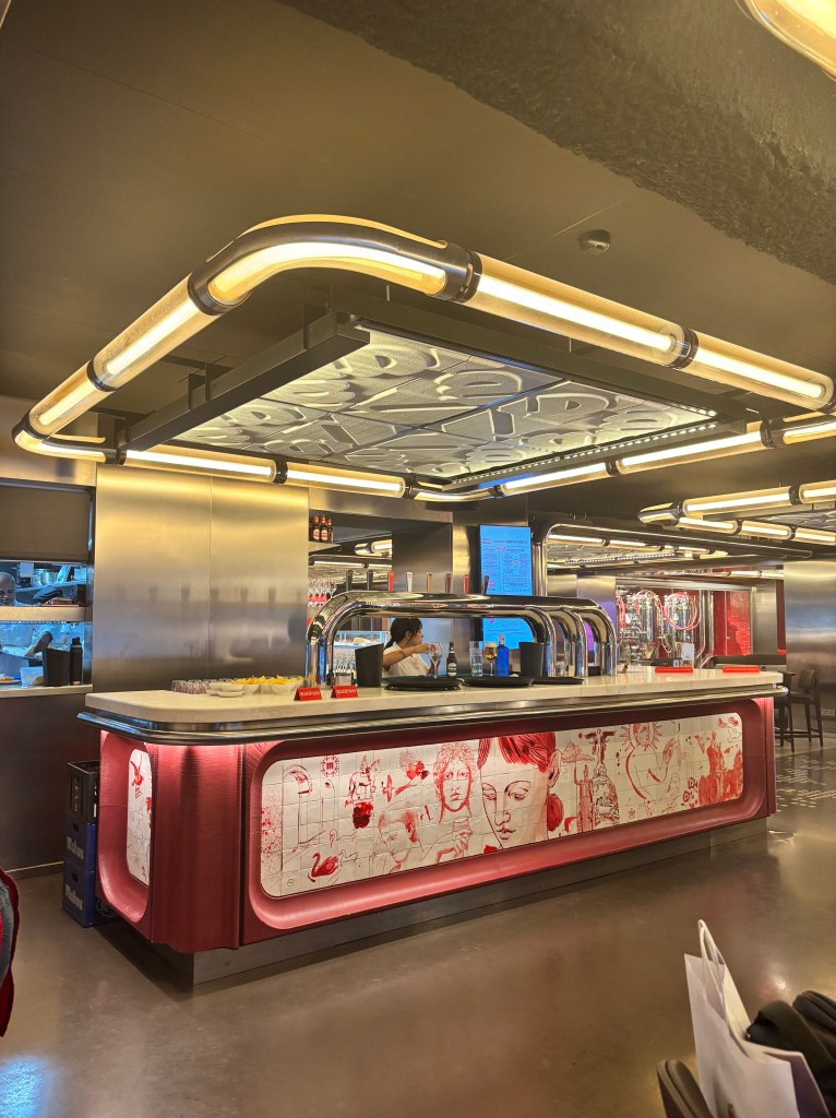 But well, I walked out, in search of a pub that I had been told by colleagues, has sweeping views of the stadium. I wandered across and found myself at Plaza Mahou, a space that’s part bar, part brewery, part stadium-experience all wrapped into one. A really huge space that sits right at Gate 54 of the Bernabéu, in the “Plaza de los Sagrados Corazones” façade. What makes it special is the fact that you’re not just grabbing a drink near the stadium – you’re inside its atmosphere – the tables and terrace overlooking the pitch.