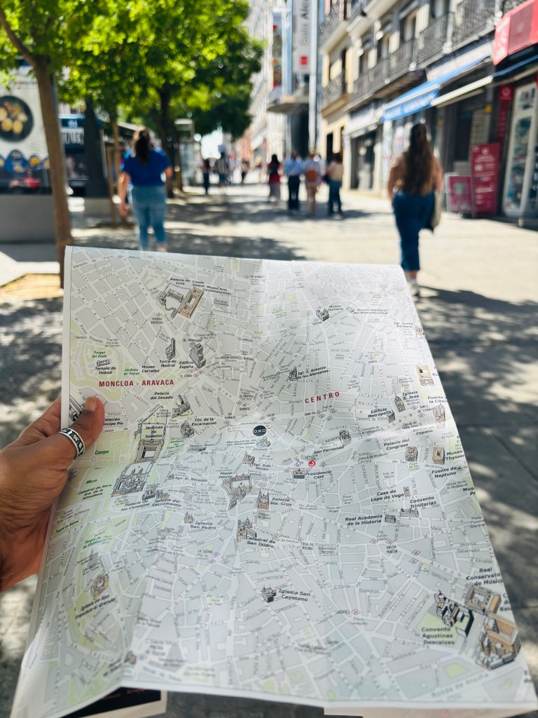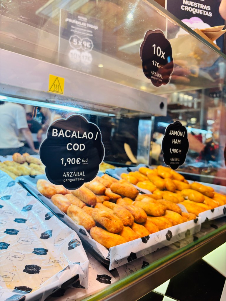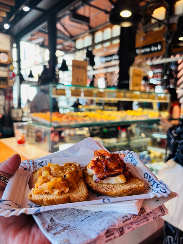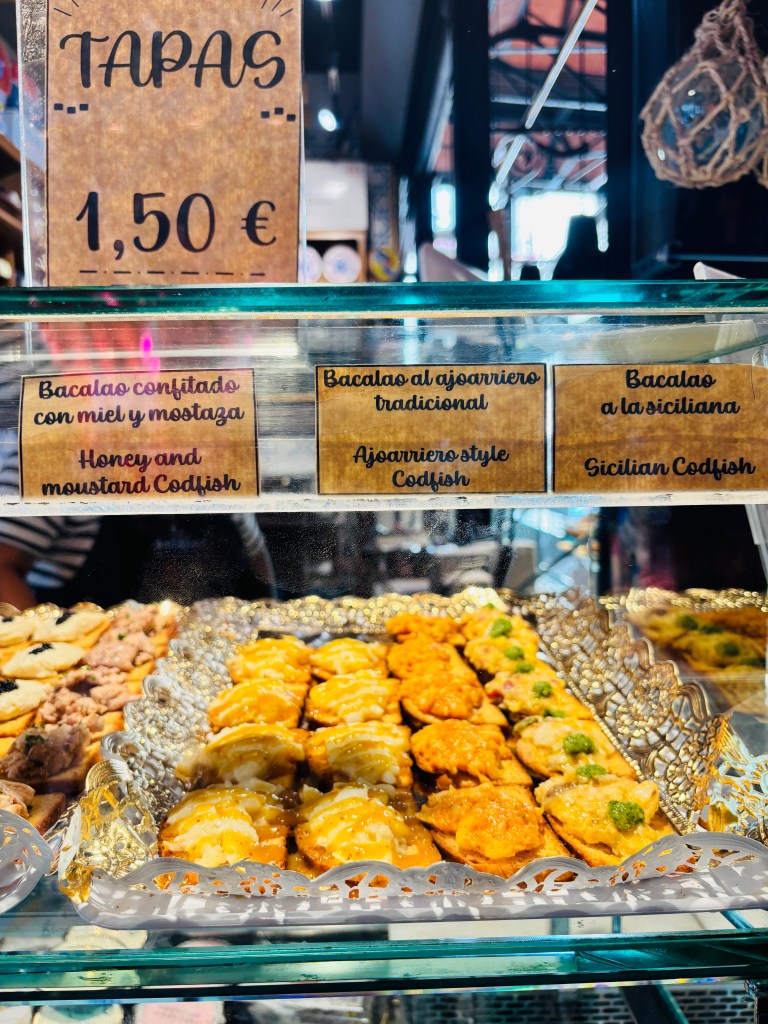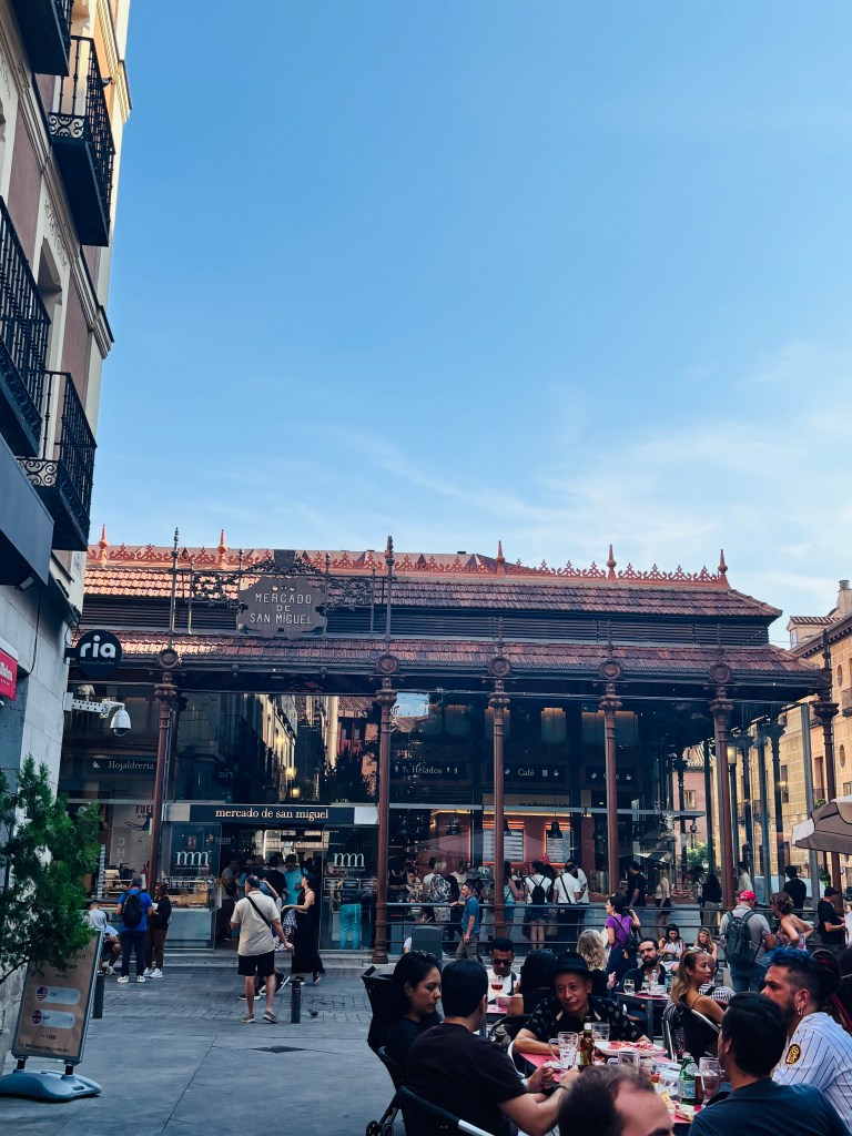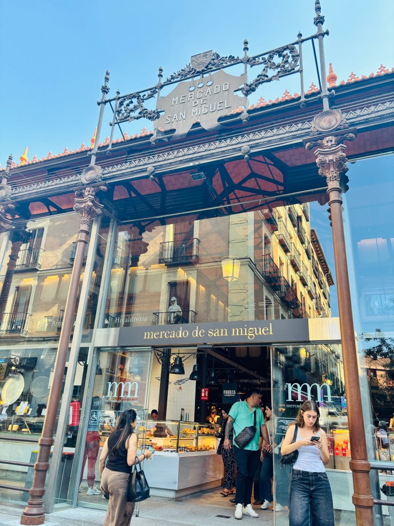 Well, I did make another stop. A deviation from the Google Maps route lead me to the Mercado de San Miguel. I peeped in out of sheer curiosity and was pleasantly surprised. An iron-and-glass food market that glowed like a jewel in the middle of the old quarter. The place was buzzing – locals and tourists shoulder to shoulder, tapas piled high on counters, the air alive with the scent of seafood, cured ham, and freshly baked bread. I tried tapas for the first time – little bites of everything: fish, cheese, croquetas, even a quick sip of sangria. I was amazed by how much variety fit into one space — and how every stall seemed to tell its own story of Spain, served on a small plate.