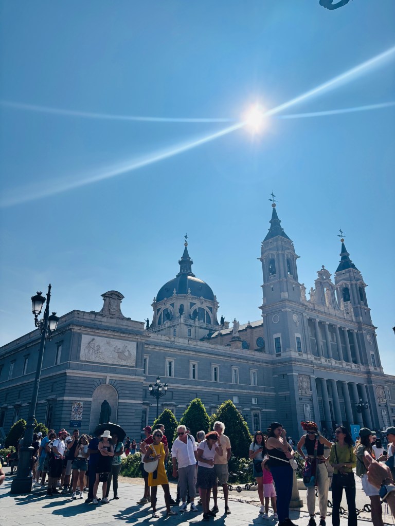 From there, I started walking with no real plan, just following the gentle slope of the streets until the grand outline of the Royal Palace of Madrid appeared ahead of me. The palace stood majestic under the (still) brightly lit up sky, and in front of it’s gate stood a long, very long queue of people waiting to get inside. And was I glad that I wasn’t in that queue! Anyway, it was a hot day and I had to give myself some time to catch on some breath before heading towards what I had planned for the evening.